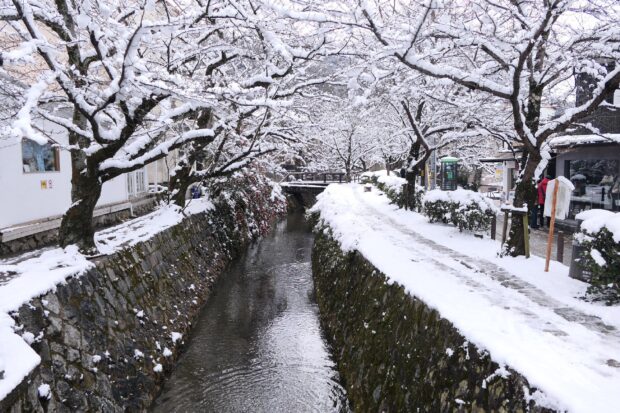 昨年と同じく2月8日に記録的な大雪に包まれた哲学の道をご覧ください。
